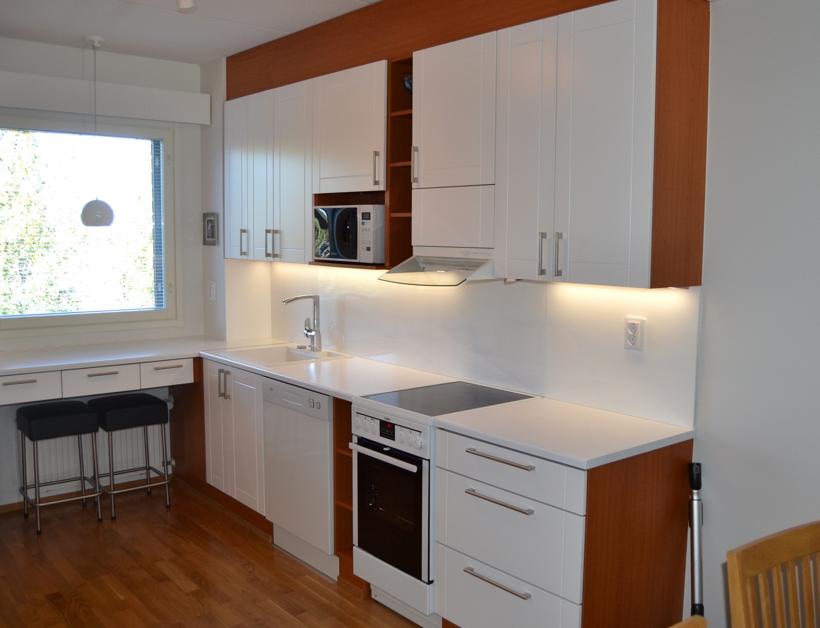 Pystymme tarjoamaan asiakkaallemme aina järkevän remontin keittiöihin ja muihinkin kalusteisiin. Usein selvitään ovien maalauksella, jolloin kustannukset jäävät mahdollisimman alhaisiksi.